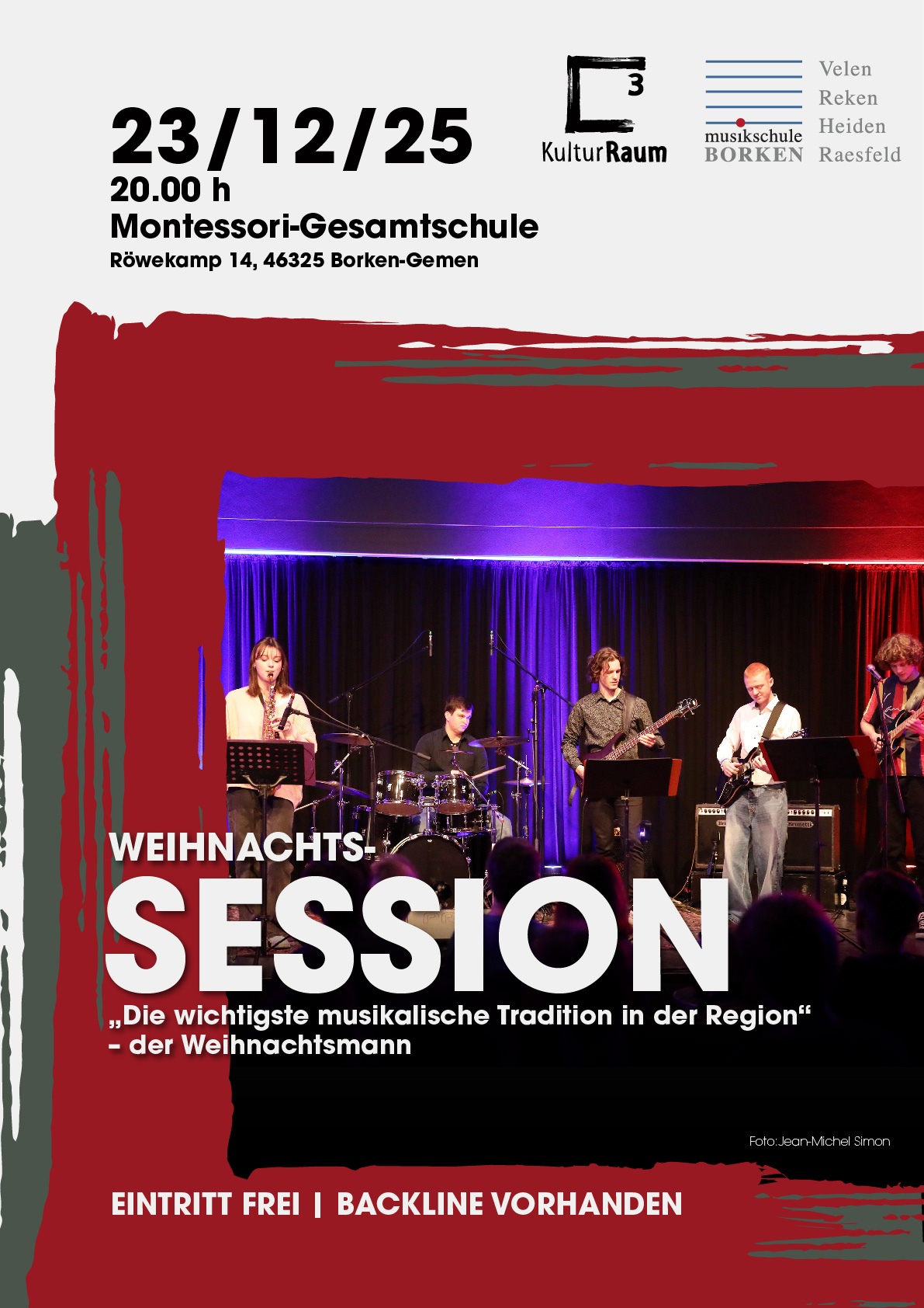 Die Jazz Session, die sich um die Jazzcombo der Musikschule Borken entwickelt, hat ist eine Kooperationsveranstaltung zwischen der Städtischen Musikschule Borken und dem KulturRaum3. Sie hat sich über die Jahre zu einem festen Bestandteil des Borkener Kulturlebens entwickelt und erfreut sich großer Beliebtheit bei Publikum und Musikern.